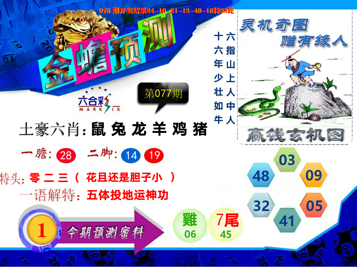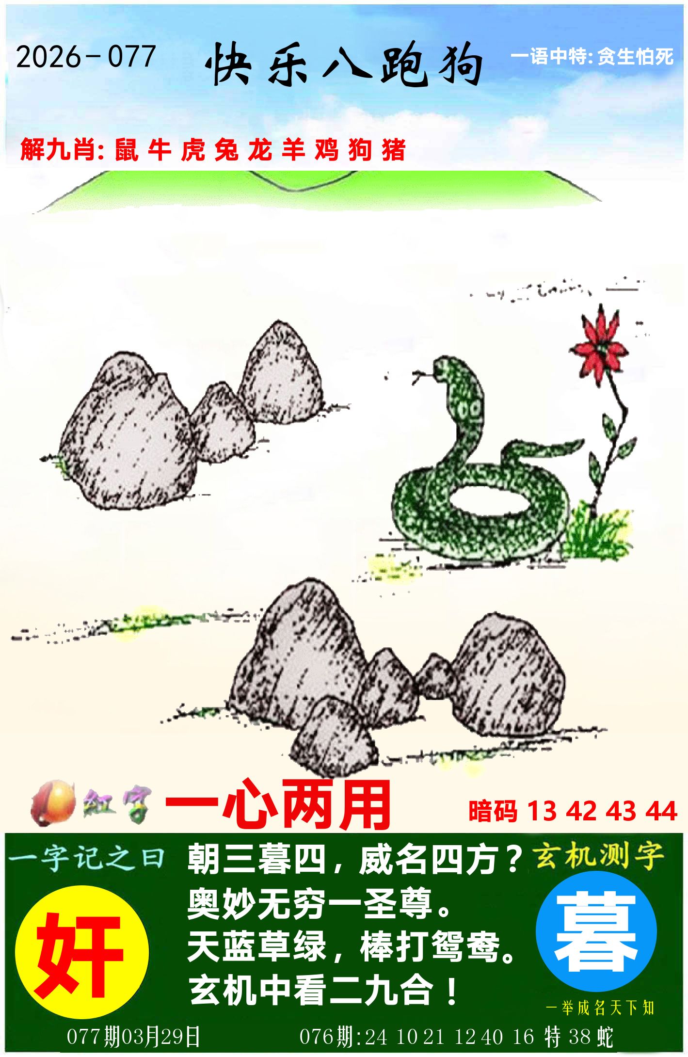 076期【马虎龙鼠羊蛇兔鸡】开 38蛇 准